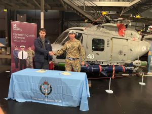Commanding Officer 39th Signal Regiment, Lieutenant Colonel Sarah Trevelion, and Alistair Roxburgh the Armed Forces Champion at Atkins in Bristol (and Wx RFCA Regional Employer Engagement Group’s Bristol sub group…